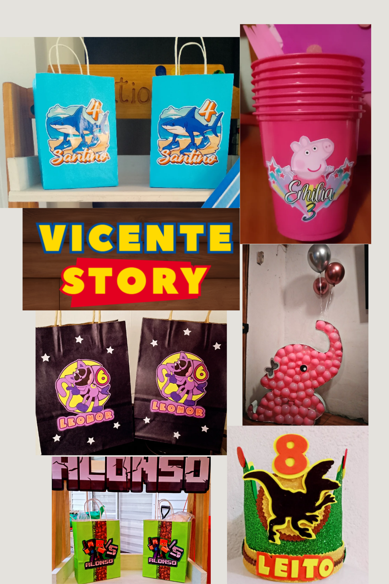 Nos encargamos de perzonalizar tus vasos, platos, servilletas. Tambien si necesitas bolsas o cajas temáticas y las invitaciones. No terminamos ahi incluye tus toppers para transformar cualquier torta en una totalmente perzonalizada y tambien de tus centros de mesa